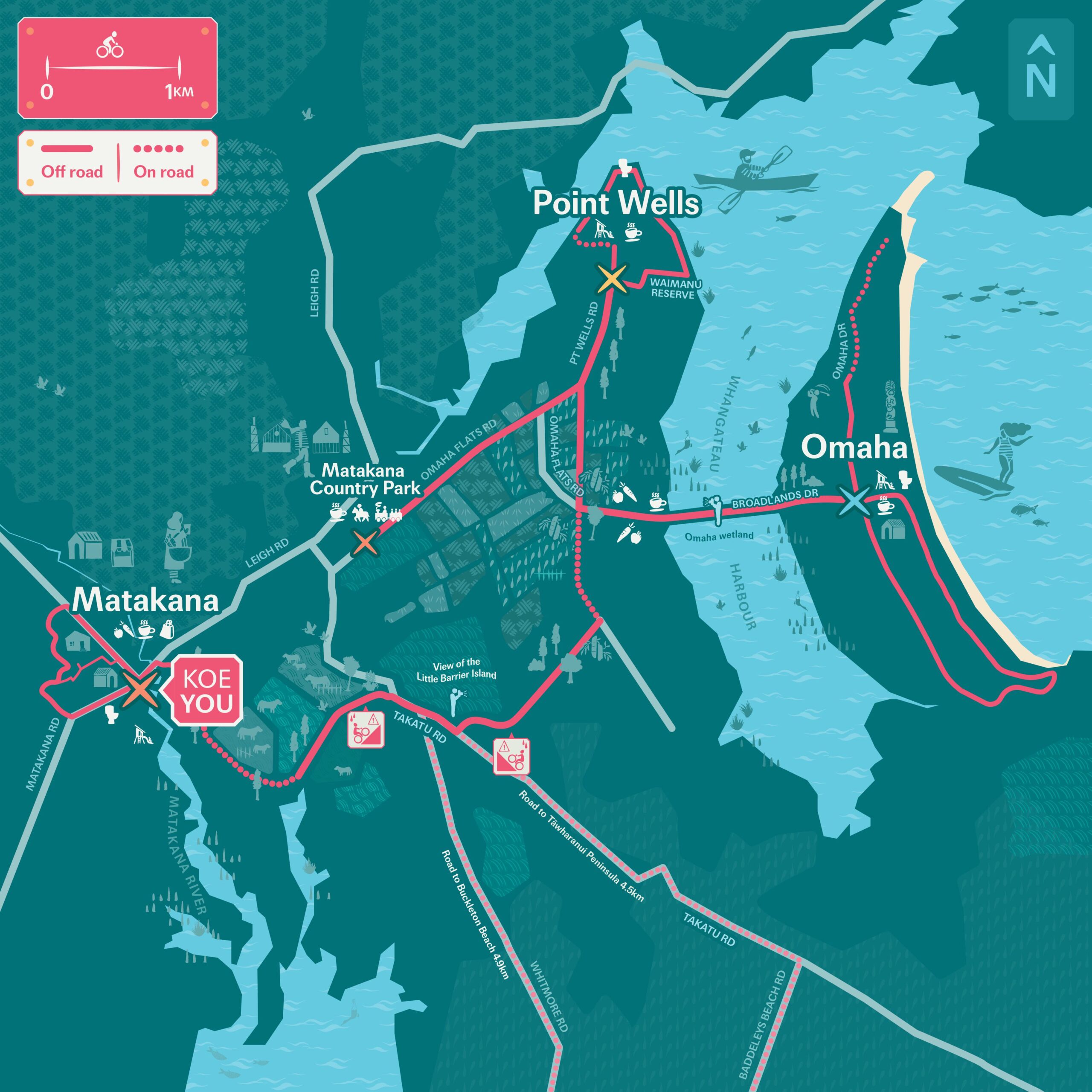 This trail is a predominantly gravel ride with a couple of steep climbs. It can be comfortably ridden as a day trip or extended into a weekend to explore everything this beautiful part of the Matakana Coast has to offer.